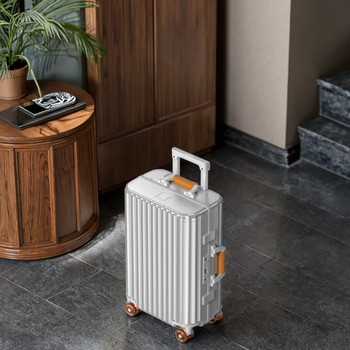 Valigia Premium in alluminio argento bagaglio con ruote Spinner silenziose e interni in morbido velluto pesca per i viaggi